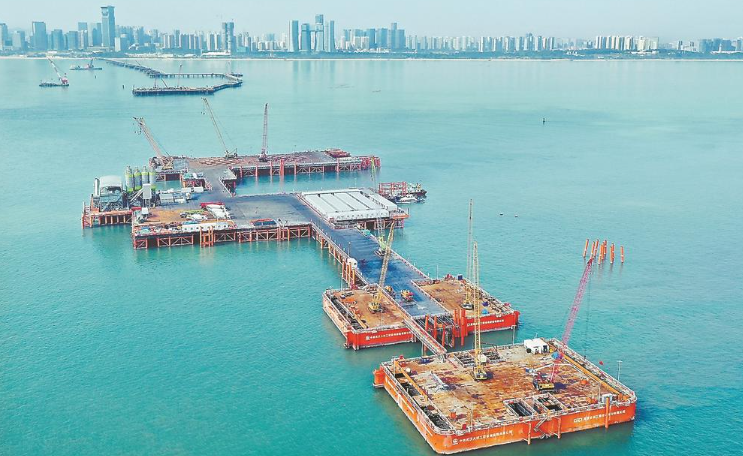 厦金大桥(厦门段)项目刘五店航道桥(悬索桥)东主塔桩基施工平台航拍图。林梓健 摄 东南网12月3日讯(福建日报记者 林丽明 林梓健 黄星榕) 12月2日11:30,随着最后一车混凝土灌入桩孔内,厦金大桥(厦门段)项目刘五店航道桥(悬索桥)东主塔桩基施工全部完成,标志着大桥开始进入水上施工新阶段。 刘五店航道桥全长1948米,索塔高约178米,主跨长928米,是福建省内最大跨径桥梁,也是福建省第一座离岸式海中悬索桥。 “刘五店航道桥海上交通组织难度大,地质结构复杂,岩石硬度达到160兆帕,相当于在一个指甲盖大小的面积上,要承受1.6吨的重量。”中交一公局集团厦金大桥(厦门段)项目东主塔施工现场负责人左佑臣介绍,航道桥东主塔由50根直径2.7~3米的钻孔灌注桩组成,呈梅花形状布置,最大桩长41.4米,钻孔深度达54.7米。 在厦门路桥工程公司牵头中交一公局精心组织、周密部署下,从今年8月东主塔首根桩基开钻下护筒到桩基施工完成,历时4个月。 |