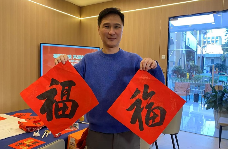 台胞、福州“台青第一云家园”负责人李正能写福字。 东南网1月23日报道(本网记者 卢金福 文/图)“新的一年希望有更多的台青加入我们基地,大家一起创业。”台胞、福州“台青第一云家园”负责人李正能表示,福建是有福之地,是一个对台胞很友善的地方,很适合台胞发展,希望在台湾岛内的台青能多来福建走走看看。 2024年,《中共中央 国务院关于支持福建探索海峡两岸融合发展新路 建设两岸融合发展示范区的意见》持续贯彻落实,闽台融合发展取得新进展、新成效。今年省政府工作报告提出,要以更实举措推进两岸融合,打造共建共享、合作紧密、情感交融的第一家园。蛇年春节即将来临,在闽发展的台胞也许下了自己的新年愿景。 李正能来大陆打拼已有二十余年,早在2003年,李正能就建立了福州首家全外教培训机构,还创办了台青创业基地“台青第一云家园”。经过多年的发展,基地从原来的一层楼,拓展到三层空间,业态也由单一的培训逐渐扩展到口腔诊所、健身、美食、美业等多个业态,目前已有20多家台企入驻。 李正能表示,在福州创业的这段时间,真切感受到了这里无微不至的温暖和坚定有力的支持。政府部门不仅在创业方面给予政策上的优惠,还经常组织各类交流活动,帮助台胞更好地融入当地。“希望新的一年基地发展和个人事业都能更上一层楼。”李正能说。