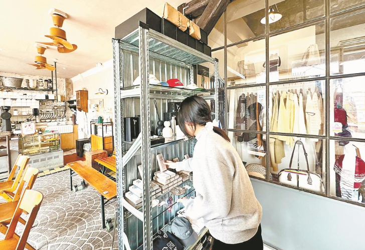 位于思明区退化公园的小店LLANO STUDIOS融合咖啡与服装两种业态。图为顾客在店内挑选产品。