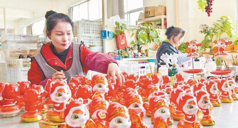 陶瓷企业设计生产的各类故宫文创作品 陈小阳 摄 核心提示 国礼瓷《喜上眉梢》登上2025年央视春晚,国宴瓷《紫绽冰华》亮相第九届亚冬会,乙巳蛇年文创生肖瓷受海内外粉丝热捧……新春伊始,德化陶瓷正迎来新的“春天”,凭借精湛工艺向世界传递中华文化的独特魅力。 德化陶瓷产业已突破传统想象,在传承工匠精神的基础上不断推陈出新,借由因地制宜发展新质生产力的契机,加速形成独特“打法”,陶瓷艺术、技术皆“争先”。2024年,德化陶瓷产业集群规模达663亿元,同比增长15%,创历史新高。 “新”正成为“世界陶瓷之都”德化陶瓷产业高质量发展的重要砝码。在政企行共同努力下,德化县通过科技创新推动产业链重塑,进行技术革新,促进产业高端化、智能化、绿色化转型;推动陶瓷设计新颖化、品牌化,与知名IP形象合作,让老手艺焕发新光彩,展现出前所未有的多样性和创新性。 德化提出了陶瓷产业集群到2027年突破千亿规模的目标。“窑一旦烧起来,就要从年头烧到年尾。”这把烧了千年的窑火,正加速提质升级、淬炼新生,各方对其充满了期待。 陶瓷与科技“对话” 一车车陶坯由传送带送出,通过全自动滑轮轨道,精准送入窑炉中烧制,全过程无需人工监测,只需运用智能终端进行实时自动化控制——在德化县,任意走进一家陶瓷企业生产车间,大概率都能见证“智造”带来的高效便利。 提起陶瓷产业,很多人会联想到传统产业、劳动力密集、生产流程繁杂、高能耗、高成本等字眼。事实上,在新质生产力的推动下,德化县陶瓷企业纷纷选择技术升级改造,借由引进智能化数字化生产设备,加速打造“智慧工厂”。 今天,陶瓷生产更有科技范儿——陶瓷3D打印机、机械手臂、滚压自动生产线、全自动隧道窑等设备,大大提高了生产效率和产品质量。 在福建省德化同鑫陶瓷有限公司的生产车间,75条智能化生产线使产能大增——10秒钟,一块泥土滚压成花盆;15秒,一个模具完成注浆工序;10分钟,一条自动滚压生产线走完一个流程……“原本手工拉坯每人每天最多做200件,现在所有生产线全开,每天可生产3万多件产品,成品率也更高。”该公司办公室负责人苏小燕说,先进设备帮助企业降本增效,也为工人减轻了负担。 当前,新质生产力成为企业关注、思考的热门话题。在德化县看来,发展新质生产力不是忽视、放弃传统产业,而是协调好“新”“老”之间的关系,加快促成“智改数转”,而这一切的关键,是让企业真正成为创新主体。 “我们欣喜地看到,在智能化生产方面,陶瓷企业开始主动提需求了。”德化县科学技术局局长苏奕垲告诉记者,陶瓷产业正逐步从过去以“经验传承”为主的传统生产模式,迈向标准化、数字化的现代工业生产模式。 来自德化县科学技术局的资料显示,2024年全县共投入研发经费5亿多元,在传统陶瓷产业的泥料配方、智能装备、表面装饰、制品烧成、上下游配套等方面的创新水平均得以提升。长远来看,2019年以来,全县累计实施各级各类科技研发项目80多项,推广全自动、半自动成型生产线675条,桩桩件件契合企业实际利益。 近年来,德化陶瓷产业稳健发展,但智能装备和高科技陶瓷的创新能力和科研水平仍需向更高层次升级。为此,德化县积极对接大院大所推进资源共享,搭建高端创新平台,成立中科陶瓷智能装备研究院和高科技陶瓷中试研究院,建立集技术集研发、成果中试、产业孵化、人才吸引于一体的新型研发体系,引导企业提升自主创新能力。 德化县本土企业丰弘机械有限公司、新博龙陶瓷有限公司的故事,就是合作共建成功的缩影。“我们在实验室与本土企业之间牵线搭桥,促进优秀科研成果转化落地。”苏奕垲表示,在中科陶瓷智能装备研究院的助力下,丰弘机械研发生产的新型炼泥机、自动套袋机等陆续上线,帮助更多陶瓷企业实现高效率、低成本运转;新博龙陶瓷应用的陶瓷多瓣模滚压成型自动生产线,不仅能同时滚压异形不规则的产品,生产效率也实现数倍提升。 陶瓷产业不单是“泥与土”的艺术,也是“光与电”的魔法。据悉,德化县每年预算4500万元用于支持科技创新,集中用于陶瓷产业惠企奖励、科技创新企业补助、科技创新创业平台奖励、企业稳产增效奖补、高端设备应用推广等,形成以高新技术企业为引领、成长型企业为支撑、中小微企业为基础的创新型企业梯队。 目前,全县共培育国家高新技术企业218家、省级专精特新中小企业71家、省科技小巨人企业35家、科技型中小企业76家、省级重点实验室1家、省级企业工程技术研究中心2家、市级新型研发机构11家。 灵感与实践结合 德化人世代以手艺为荣。他们说,传统制陶涉及72道大工序、200多道小工序,道道马虎不得。孜孜以求、精益求精的工匠精神,孕育了一代代陶瓷人。 “德化瓷土是有灵性的,而我们是替它发声的人。”亮相今年央视春晚的国礼瓷《喜上眉梢》的作者谢锦华说。 从灵感到实践,设计是作品完美呈现的根基。 在福建省德化上古陶瓷有限公司负责人卢华禹看来,好的设计,能够催生一个好的产品、成就一个好的企业。故而,工业设计是创新链的起点、价值链的源头。 德化县级工业设计中心上古陶瓷每年的设计研发投入占总支出的20%以上。“站在市场的角度去设计作品,不能单纯为设计而设计。”卢华禹介绍,该公司近年来推