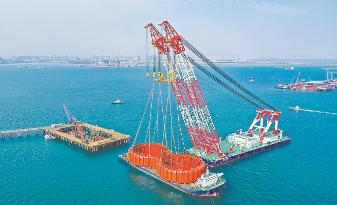 3月9日下午,厦金大桥(厦门段)项目控制性工程刘五店航道桥(悬索桥)西主塔承台钢套箱精准安装落位,为后续主塔承台施工、塔柱爬升奠定坚实基础。 据施工单位中交二航局厦金大桥(厦门段)A1标项目负责人晏彪介绍,该钢套箱为哑铃型双壁钢套箱结构,高11.7米、长105.8米、宽47米,重4225吨,是目前国内最重的跨海大桥永久双壁防撞钢套箱。作为桥梁永久防撞设施,钢套箱如同“钢铁巨盾”,能有效缓冲船舶等水上交通工具对桥墩的意外撞击,提高桥梁结构耐久性。 该钢套箱采用5500吨级吊装能力起重船“二航卓越”进行整体吊装,不仅大幅优化了施工流程,减少了海上作业环节,还有效降低了拼装误差及安全风险,仅用3个小时就完成吊装工作。 福建日报林梓健 艾存博 彭仕洲 摄影报道 |