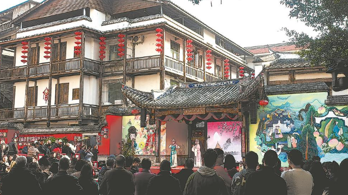 春节期间,三坊七巷福建非遗博览苑的古戏台上,省实验闽剧院的艺术家为市民和游客带去闽剧折子戏演出。