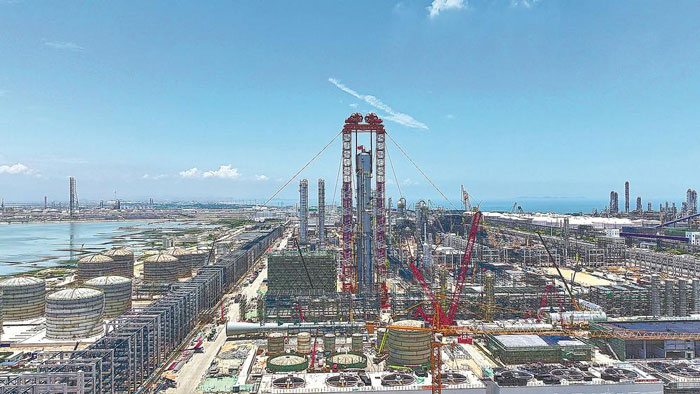 东南网5月17日讯 (福建日报记者 苏益纯 通讯员 牟洋 卢冠琼 文/图) 5月16日,全球最大EO/EG(环氧乙烷/乙二醇)洗涤塔在福建古雷石化基地成功吊装,标志着中沙古雷乙烯项目建设取得又一关键性突破。 EO/EG装置是中沙古雷乙烯项目重要的组成单元,洗涤塔是装置的核心工艺设备之一,主要用于实现气体净化与循环利用。该洗涤塔自重超2560吨、长109米,是全球规模最大的EO/EG装置核心设备,由“国之重器”——5000吨级液压提升机和2000吨级溜尾吊机共同吊装作业。“穿衣戴帽”后重量3250吨,在重量、高度等方面均为同类装置之最。同时,该设备还以25天的施工时长刷新了全国同类塔器“穿衣戴帽”施工作业最快45天的纪录,为中沙古雷乙烯项目早日投产达效争取了宝贵时间。 中沙古雷乙烯项目总投资约448亿元人民币,是中沙产能与投资合作的重点项目、国家重大外资第三批专班项目,更是推动高质量共建“一带一路”倡议与沙特“2030愿景”对接的重要实践。整体项目预计于2026年下半年建成投产,可带动上下游投资近2000亿元,对于降低国内高端化工品对外依存度、保障能源安全和产业链供应链稳定具有重要意义。 |