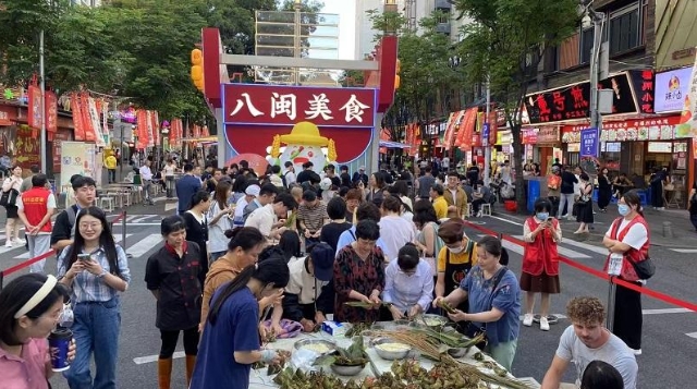活动现场。 东南网5月30日讯(本网记者 卢金福 文/图)今日下午,一场“我们的节日·端午”活动在福州达明美食街举办,活动以“同粽同源 共襄端午”为主题,通过一系列丰富多彩的文化活动,不仅展现了中华传统文化的独特魅力,更促进了两岸文化的深度交流与融合。 作为福州知名的美食聚集地,达明美食街不仅汇聚了各式各样的地方小吃,更在此次端午活动中成为传统美食与节日文化交相辉映的舞台,从经典的粽子到特色的台湾小吃,各式各样的端午美食琳琅满目。市民们在品尝美食的同时,也深刻感受到了端午节的独特韵味和两岸文化的交融。 活动现场,两岸青年齐聚台湾美食小广场,在包粽子师傅的悉心指导下,共同体验了传统端午习俗的乐趣。粽叶飘香,欢声笑语不断,大家在交流中增进了对彼此文化的了解和认同。 台湾青年一起包粽子。 台青陈筱婷是一名自媒体博主,开设了“一人一狗游福州”视频号,带着宠物狗“老夫子”,以台青视角开启福州文化探秘之旅。这几天,她在福州体验了许多端午节活动,拍摄了不少素材,将制作成短视频,呈现福州端午习俗。“让更多台湾朋友看到,我们两岸共享同一份文化根脉,共过同一个端午佳节。”陈筱婷说。 台青在为市民派送冰淇淋。 台青王筠娜目前就读福建师范大学计算机专业,这次是她第一次体验包粽子,她一边专注地裹着粽叶,一边兴奋地分享道:“在台湾,端午节总少不了吃粽子,但亲手包还是头一回!和大陆朋友交流技巧时,发现我们包粽子的手法、用料虽有差异,可对节日的期待、对团圆的向往完全一样。让我真切感受到两岸的端午习俗其实是同根同源的。” 台青、福建师范大学编导专业学生吴冠欣今天还参与了划龙舟比赛。她表示,通过活动,深刻感受到,两岸同胞对端午文化的热爱,“大家聚在一起,让我觉得两岸就是一家人。” 现场节目表演。 舞台环节同样精彩纷呈,开场舞蹈《橘颂》以优雅的舞姿拉开了活动的序幕,乐器伴舞《上春山》将传统音乐与舞蹈完美融合,歌手演唱的《如愿》《风吹麦浪》等歌曲更是引来全场共鸣。闽都乡学老师方杰与两岸嘉宾的端午习俗对话,更是让观众深入了解了两地文化的异同,拉近了彼此的距离。 除了文艺表演,活动现场还设置了点朱砂、拍照打卡等互动环节,吸引了众多市民和游客的参与。小朋友们额间点上一抹朱砂,寓意驱邪祈福;大型粽子气模前,市民们纷纷拍照留念,记录下这美好的节日瞬间。 主办方表示,此次在达明美食街举办的活动,不仅为广大市民朋友们提供了一个了解和体验福州民俗美食的平台,更增进了两岸同胞之间的情感交流与文化认同。未来,相信会有更多这样的活动,让两岸同胞在美食与文化的交融中,携手共进,共同书写两岸融合发展的新篇章。 |