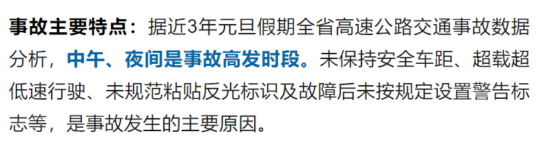 元旦将至 大家有准备出游吗 2024年元旦假期为 2023年12月30日 至2024年1月1日 期间我省以多云天气为主 非常适宜出行哦~ 需要注意的是 元旦假期期间 高速公路正常收费通行 并且流量较日常略有上升 记得提前规划、错峰出行哦 ↓↓↓ 交通安全形势研判 高峰时段预测:元旦假期预计将出现2次潮汐式流量高峰。 12月30日上午9时至12时(假期第一天)为出程高峰,车流量明显增大。 12月31日流量平稳。 1月1日15时至20时为返程高峰,20时后,逐步恢复常态运行。 此外,12月29日下午(假期前一天)17时至20时将提前出现一波出程高峰。