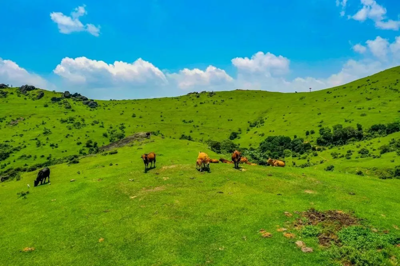 从福州驱车出发一小时,便能来到广袤无垠的大姆山。这个天然高山草场,绵延八百亩,主峰海拔有633米,山顶满是大片的草原,放眼望去都是跌宕起伏的山脉,连绵几个山头,草原似乎就是自由和舒展的最佳代言人。万里无垠的绿意充满了生命的活力,还有人不知道“公园二十分钟效应”吗?趁着假期去大草原里好好呼吸一下新鲜空气吧。