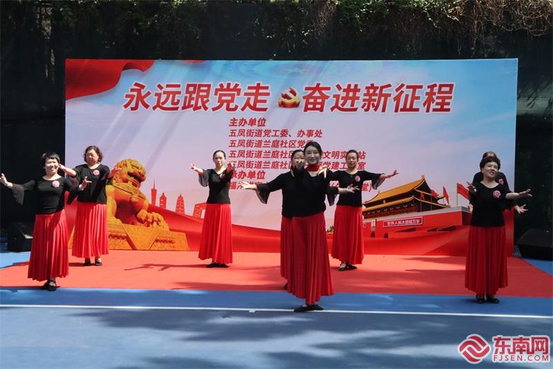 东南网7月1日讯(本网记者 卢金福 文/图)今日是中国共产党成立103周年,福建全省各地组织开展内容丰富、形式多样的庆祝活动,重温党的光荣历史,汲取奋进力量,激励各级党组织和广大党员弘扬伟大建党精神。今日上午,记者在福州市五凤街道兰庭社区巴黎之春小区看到,小区网球场上举办了一场文艺演出,为党的生日献礼,同时还为4名老党员颁发“光荣在党50年”纪念章。