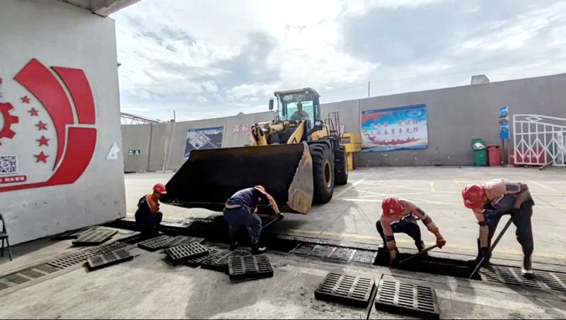 福建煤电公司开展对码头卸船机、栈桥等建筑门、窗、顶棚进行专项检查的同时,组织对码头水沟淤泥进行清理,准备好充裕的抗灾防汛物资。(赖春平摄)