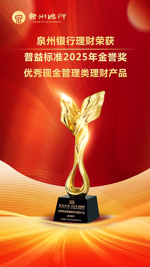 近日,由普益标准主办的“2025资产管理与财富管理行业发展大会暨第五届‘金誉奖’”评选结果揭晓,泉州银行“海西·源泉”悦钱包净值型理财产品从全国250余家金融机构产品中脱颖而出,荣获“优秀现金管理类理财产品”奖。泉州银行是福建省内唯一一家获此殊荣的城商行。