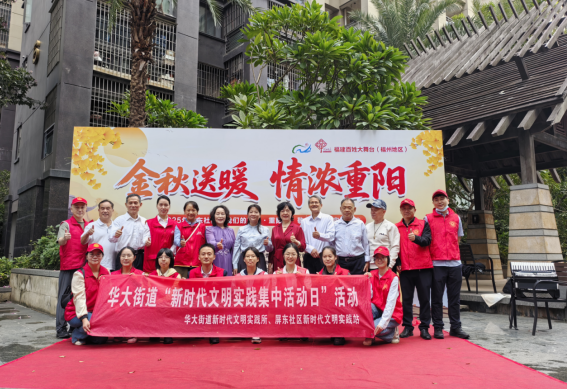 东南网10月24日讯 为弘扬中华民族尊老敬老传统美德,推进“一刻钟”幸福圈建设。10月24日上午,华大街道屏东社区党委、新时代文明实践站联合福建日报社机关党委、福建机关事务管理局等20家共建单位联合主办的“金秋送暖 情浓重阳”敬老爱老主题活动,在省直屏东城水榭台温情启幕。