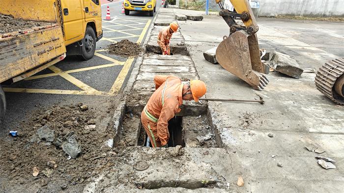 10月27日的作业现场,一派忙碌景象。养护工人们身着醒目的反光标志服,头戴安全帽,手持铁铲、扫帚等工具,弯腰俯身细致清理每一处淤积。污泥沾满衣物,他们却毫无怨言,始终专注于手中的工作,全力保障边沟排水通畅。
