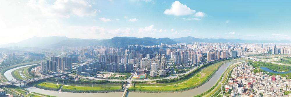 蜿蜒伸展的木兰溪穿越城厢城区。 蔡新添 摄