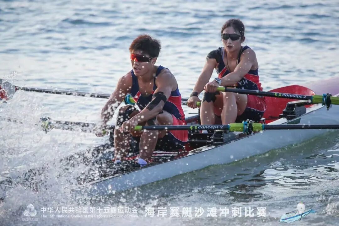 海岸赛艇混合双人双桨项目比赛中
