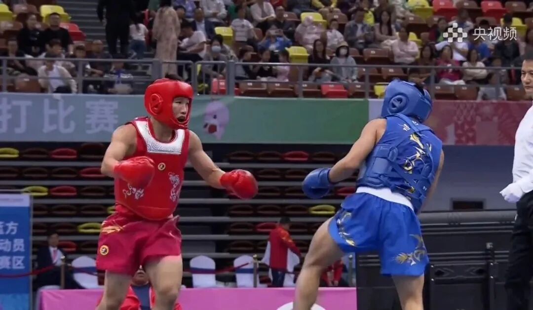 武术散打男子60公斤级项目比赛中