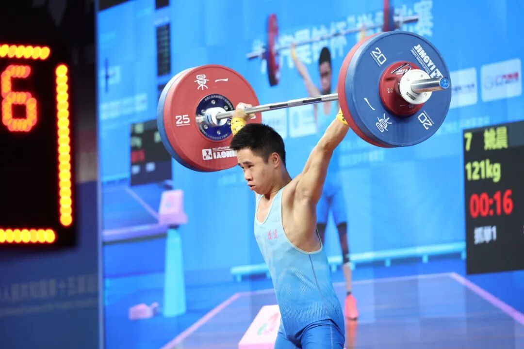 举重男子55公斤级项目比赛中