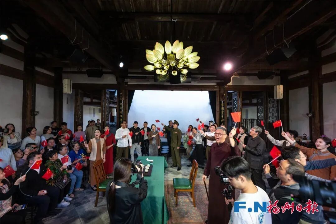 14日,在三坊七巷宫巷18号沉浸式剧场,由福建人民艺术剧院打造的“血性福州”革命历史题材沉浸式戏剧系列之《冷月无声——吴石传奇》内测演出。