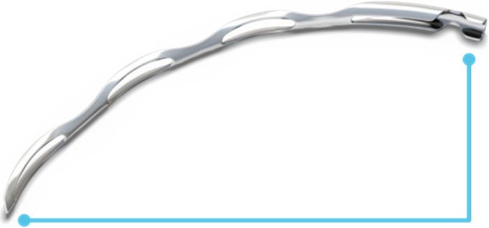 △Hydrus 微支架整体呈弧形,前端为半管状结构,后端为管状结构,长度约10毫米。