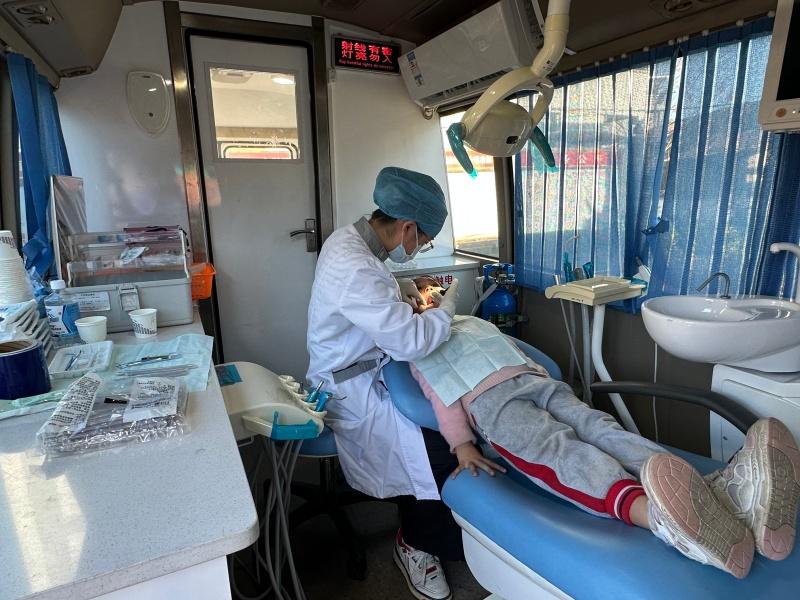 医生在移动诊疗车上为孩子们进行治疗。(福建医科大学附属口腔医院供图)