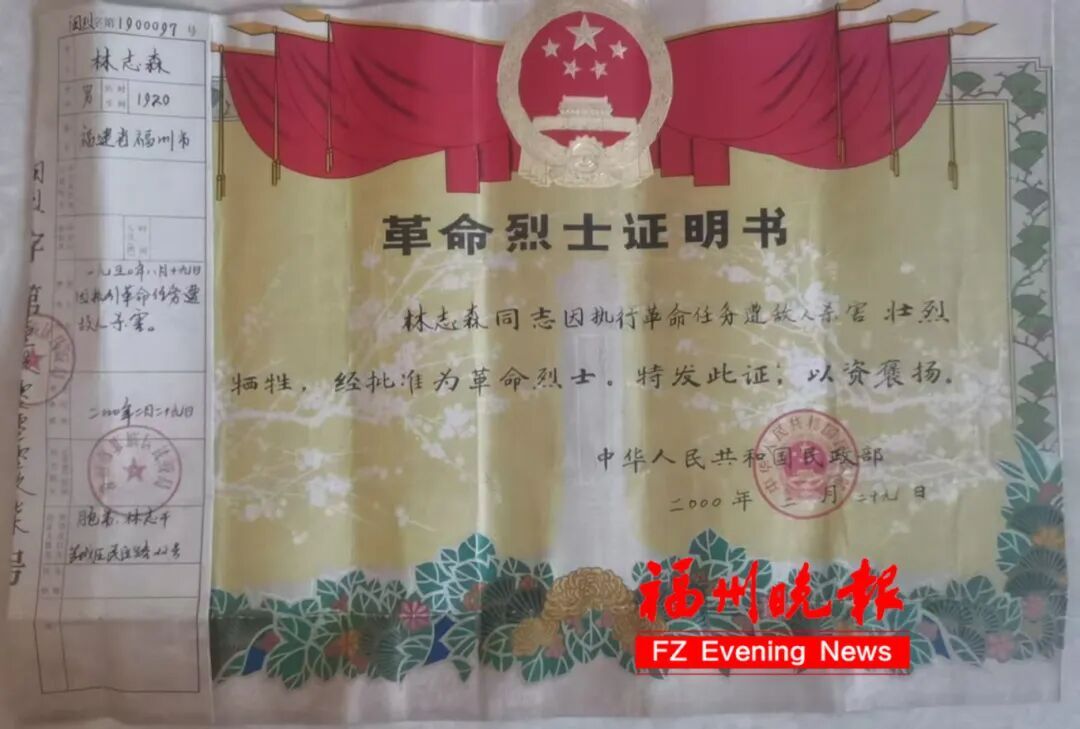 2000年3月,中华人民共和国民政部向林志森的亲属发放了林志森的烈士证,上面写道:林志森同志因执行革命任务遭敌人杀害壮烈牺牲,经批准为革命烈士,特发此证,以资褒扬。