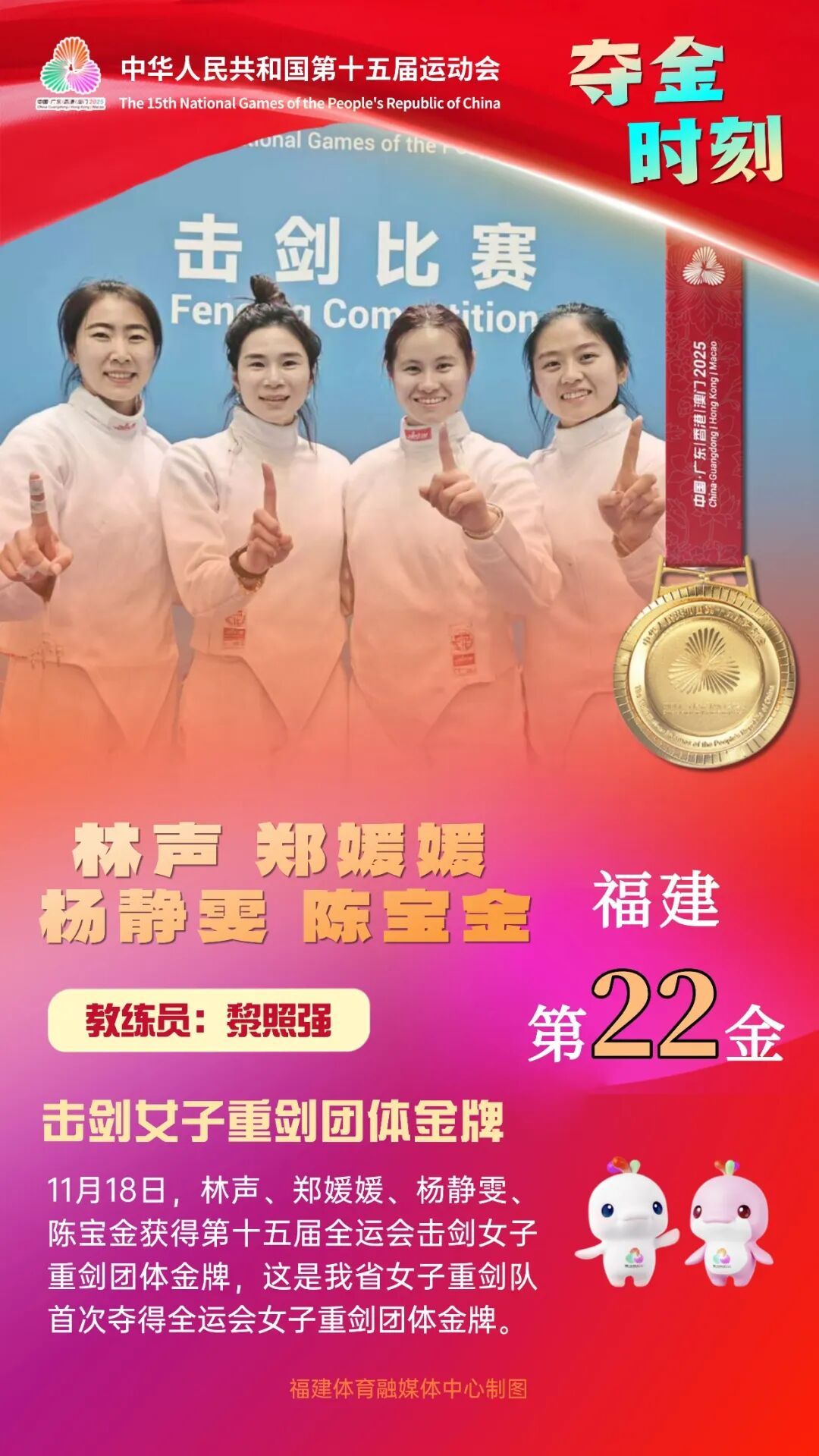 首次夺得全运会女子重剑团体金牌