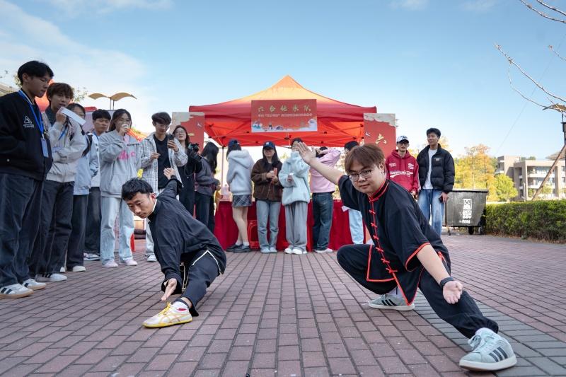 非遗体验区成为最火爆的“打卡点”。惠安女服饰的银链叮咚与南音古乐的悠扬相映成趣,“六合拳”刚劲有力的招式赢得满堂喝彩。苗族银饰制作、畲族竹竿舞等少数民族特色项目吸引师生争相体验。文化产业系2023级汉语言文学专业的张雨薇同学正专注制作川派皮影:“亲手让皮影人物在幕布上‘活’过来,这种跨越千里的文化对话令人震撼!”