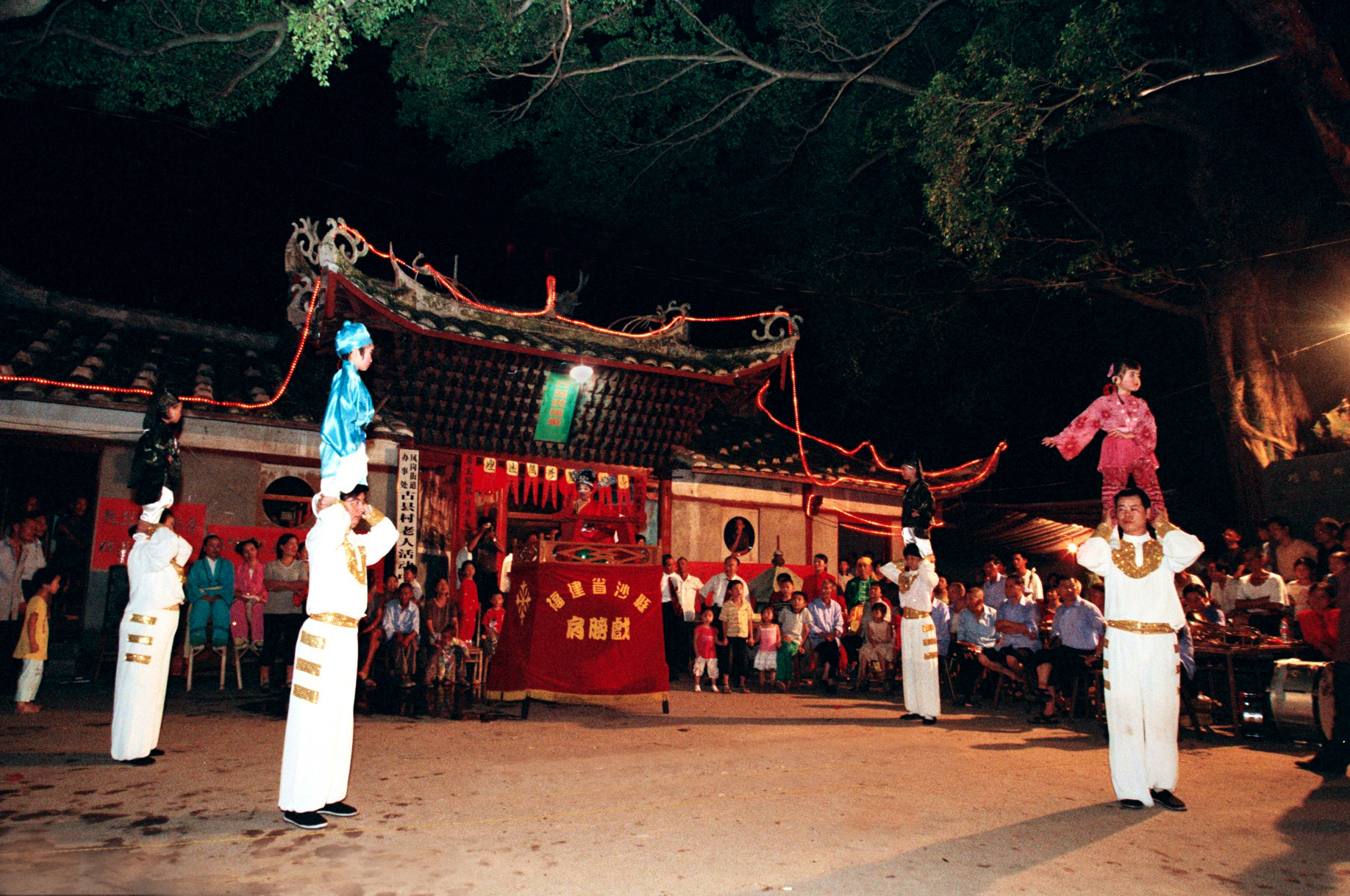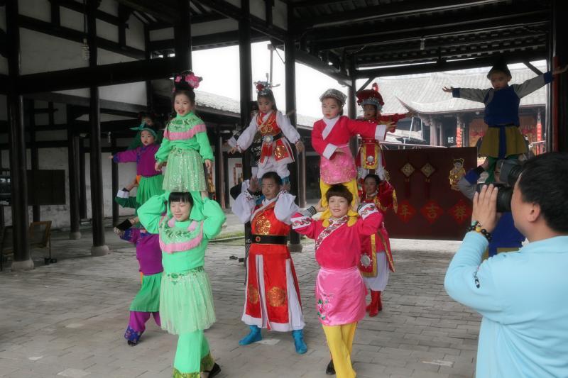 陈丽凤作为底座表演(左一)。沙县肩膀戏传承和保护中心供图