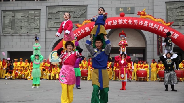 沙县肩膀戏。沙县肩膀戏传承和保护中心提供 东南网11月6日讯 (本网记者 肖晓敏 刘惠萍)一千多年来,在这沙县方钟灵毓秀的山水间,逐渐形成迎烛桥、赛春牛、游鱼等一系列地方文化习俗,丰富多彩,内涵丰富。肩膀戏,被称为我国民间的活木偶,是沙县地方文化中最具代表性的表演艺术形式之一。表演时,一个约五六岁的孩童站在大人的肩上,以肩膀为舞台,穿着戏服边唱边舞,在悠扬的乐曲中演戏,煞是可爱;大人根据剧情负责台位走步,上下配合,浑然一体,是一种高难度的特别戏种。因演技奇特,唱腔动听,兼容各调,场地不拘,素有"肩膀上的民间艺术奇葩"之美称,2005年10月被列为福建省首批省级非物质文化遗产。 十月的一个早上,走进沙县西门幼儿园,走上贴满肩膀戏演出照片的楼梯,我们见到了福建省非物质文化遗产项目沙县肩膀戏代表性传承人陈丽凤。 “我小时候,老家每当庙会活动就有肩膀戏表演,生动有趣是我最初对肩膀戏的印象。”陈丽凤说道。那时,肩膀戏表演者大部分是农民,他们劳作回来,才有空彩排,使用的多为本土的乐器。后来,自己生了女儿,社区组织肩膀戏表演活动,基于对肩膀戏的热爱,陈丽凤积极地带领女儿加入了肩膀戏表演。从此,肩膀戏的种子便在在陈丽凤心里生根发芽,成为一生的事业。 陈丽凤一直坚守着“传承”的事,“如何更好地传承肩膀戏?”这个问题她一直在思考。 播撒种子,种下希望