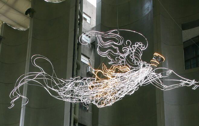《飞天雅音》 图片由受访者提供 东南网1月9日讯(福建日报记者 卞军凯 ) 元旦前夕,备受关注的福州老建筑仓山影剧院,举办了重生后的首场展览——“寻山造境”艺术展,容纳了16位知名当代艺术家的代表作品。其中,在展览现场凌空悬挂的《飞天雅音》,闪闪发光、振翅欲飞,颇为引人注目。它的作者,是闽籍当代艺术家吴达新。 “出走半生,家乡福建厚重的文化在头脑里挥之不去,助我创作了多件当代艺术作品。”吴达新感慨地说,虽然福建当代艺术发展水平与国内一线地域相比还有明显差距,但福建在外人才济济、文化底蕴深厚、潜在展示空间丰富,只待培育良性艺术生态—— 在外闽籍艺术家,人心思归 上世纪90年代初,吴达新从华侨大学日语专业毕业后,漂洋过海赴日本留学。在日本国立琦玉大学,他师从山口静一教授专修东洋美术史。2001年,吴达新继续留学美国,在纽约市立大学学习现代艺术,主要从事装置作品、摄影作品创作。 从2007年开始,吴达新的装置作品频频参加海内外大展。“纽约亚洲艺术博览会”“芝加哥艺术博览会”“改造历史2000—2009年中国新艺术展”“首届南京双年展”“日本越后妻有大地三年展”“香港国际艺术博览会”……随着一件件作品的亮相、受到好评,吴达新渐有名气。2013年以来,他先后在北京唐人艺术中心等地成功举办了个人艺术展,作品得到更多认可。 2013年,吴达新的老家泉州与韩国光州、日本横滨共同入选首届“东亚文化之都”。当时,光州、横滨两座城市的当代艺术已经繁荣,横滨三年展、光州双年展都是亚洲著名艺术大展,泉州在这方面却近乎空白。收到家乡创作邀请后,吴达新决定以当代艺术的语言和手法,讲述传统文化故事,创作了《飞天雅音》。“我用螺纹钢、LED灯组合新手法,重现宋代人对天际飞翔的向往。”吴达新说。 这是吴达新海外留学后,首次回家乡创作。2015年,他又花了3个月时间,创作了钢结构巨型雕塑作品《刺桐花开》,成为当地的文化地标。“家乡是根。能用作品为福建当代艺术做点贡献,非常乐意。”他说。 尽管福建当代艺术基础偏弱,但走出的当代艺术名家为数不少,如享誉海内外的蔡国强、著名艺术家邱志杰、中国美术家协会主席范迪安、中国美术学院院长许江……“人心思归,希望福建发挥好这些人才优势。”吴达新建议。