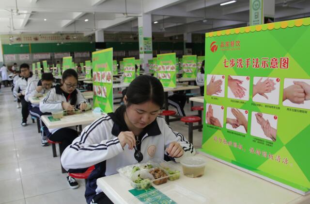 在石狮一中,学生们在设置了隔板的餐厅就餐。 福建日报记者 王毅 通讯员 郭雅霞 摄