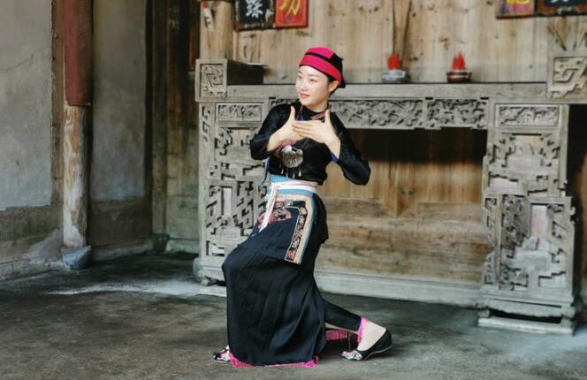 畲舞传承人雷秀莲在展示畲舞。福建日报记者 庄严 通讯员 颜晨曦 摄 畲服悠然逐风流 在灵动的畲舞表演中,畲族服饰的美也得到呈现,尤其是畲族女子的传统服饰,代表了畲服的惊艳。最具代表性的当属“凤凰装”,其以黑、蓝为主调,上衣为右开襟,衣领、袖口、右襟多绣有彩色花边,下身为平头九分裤,外系一尺多宽的围裙。女子腰间还束有一条宽四厘米、长一米余的花腰带,亦叫合手巾带。未婚女性的是粉色花纹,已婚的多为白布条,年长的则是蓝黑色花纹,别有风采又便于区分身份。 霞浦畲族研究会副会长雷翰琳说,霞浦畲族凤凰装分为福宁本州西路装和福宁本州东路装。尤以西路装别具一格,可两面翻穿,逢年过节或外出做客时穿正面,在家或外出劳动穿反面。 其中,崇儒畲族乡上水村的畲服,以精细的绣工、细致的剪裁、夺目的花纹成为西路装代表。上水村第八代畲服传承人兰昌玉说,制作一件畲服大约需要一个月的时间。量体、备料、剪裁和缝制等,每个环节都有讲究。 首先为穿衣人量身,记录其袖长、腰围、衣长;然后用图饼在自织的苎麻布上画出需要剪裁的线条,沿着线条分别剪出衣襟连袖、衣领布片、内外襟领口片、垫肩、衣边内衬、绣花片垫布等衣裳的各个部分,再将它们一一拼接缝合备用。 刺绣是畲服制作的“重头戏”,制作者以扣针法在衬布上绣出各种图案,再捻线勾边,凸显图案立体感。其中,捻线是一种古老的技艺,制作过程看似简单,却十分考验手上功夫。制作者要有多年的经验,才能熟练掌握各种技巧,制作出来的服装才地道。 技艺传承在路上 随着经济社会的发展,生活方式快速变迁,畲族传统文化也不可避免地受到了冲击。“以前,日常穿畲服的人不多,只在三月三、九月九等大的节日里零星出现,会跳畲舞的就更少了。”雷翰琳说。 近些年来,随着对畲族文化的挖掘和弘扬,畲族群众也越来越重视对传统的传承和发展。只要有空,雷秀莲便会教村里的小朋友和妇女跳畲舞,并根据舞步特色进行命名,便于大家记忆学习。她还通过微信公众号、抖音等网络平台,宣传推广畲舞。 为了更好地传承畲舞,雷秀莲所在的半月里村正在积极建设畲舞非遗馆,她自己也正着手总结整理关于畲舞的文字资料,探索畲舞的理论化。雷秀莲说,一定要让更多人认识畲舞,把它传承下去。 畲服让畲舞更美。为传承技艺,上水村打破畲族服装制作技艺“传男不传女”的老规矩,拓展传承门路,兰昌玉由此也成为村里的畲服制作传承人。她制作的畲服,条纹图案层次分明、排列有序,花纹既精细又鲜艳。遇上节日表演,常有畲族姑娘慕名前来向她定制畲服。“一整套纯手工畲服,可以卖3000元。”兰昌玉说。 |