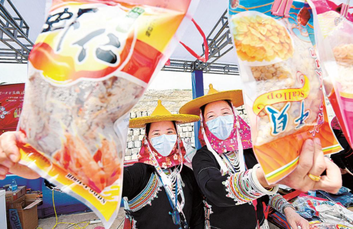 东南网9月23日讯(福建日报记者 林辉 通讯员 陈秋红 摄)近年来,惠安县小岞镇以“小岞鱿鱼”“小岞紫菜”“小岞虾仁”3个国家地理标志作为推动区域经济高质量发展的“金钥匙”,做强渔业产业链。据统计,去年小岞镇渔业产值11亿元,农民人均收入24258元。 图为惠安女展示当地渔业产品。