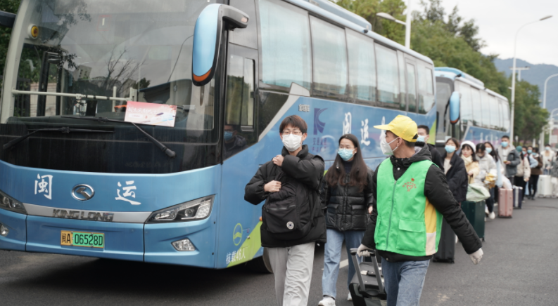 “定制巴士”助力寒假学生回乡路 (林逸魁供图) 东南网1月19日讯(本网记者 冯川叶 通讯员 江曲 林逸魁)昨日,三辆“定制巴士”从福建医科大学旗山校区载着135名学生向福州站出发。近日,伴随着春运大幕的拉开,福州火车站再次迎来了一波学生返乡潮。 在疫情防控的重要时期,一些福州大中专院校通过“定制巴士”将返乡学子从学校直接护送至火车站,与火车站一起联合服务好学生旅客。铁路工作人员介绍,乘坐定制巴士,不仅可以从学校直接抵达火车站,不用在寒风中等公交车,而且每辆车都很宽松、不拥挤。 据了解,今年寒假期间开行的“定制巴士”活动,只需要一次接载超过20人的学生团体,就可以在“闽运易行”平台上约车,福州火车站与公交公司信息共享,为学生提供进站乘车“一条龙”服务,学生们只要在学校生活区“定制巴士”停靠点上车,就可以一路顺利通行。学生到达高铁站后,福州火车站和“八闽第一站”志愿者会前往接车引导,站内还开辟了学生候车专区和“绿色进站通道”,为学生乘车提供便利服务。 |