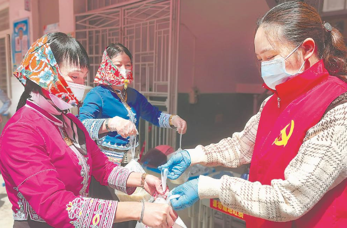 东南网4月2日讯(福建日报记者 林辉 通讯员 李丽英 陈秋红 摄)4月1日,惠安县小岞镇小岞中心小学核酸检测点,来自惠安女巾帼志愿队的队员将热气腾腾的饭菜送到党员志愿者的手中。