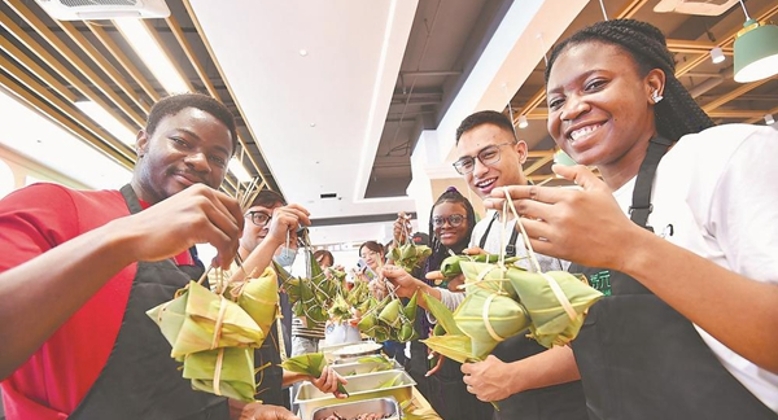 东南网6月4日讯(福建日报记者 林辉 通讯员 林煜轩 摄影报道)3日,福州外语外贸学院开展“外国留学生过端午”活动。过端午,自然少不了包粽子、吃粽子。叠粽叶、填糯米、放蜜枣、系绳子,校食堂工作人员演示着包粽子的方法,并手把手教给留学生。留学生们还品尝到了工作人员提前准备好的粽子,在趣味活动中感受中国传统文化的魅力。