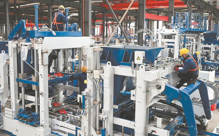 近期,福州、泉州、厦门等多地政府帮助企业“组团”赴境外参加经贸活动,外贸企业生产忙、信心足,全力冲刺“开门红”。图为福建泉工股份有限公司工作人员在安装销往海外的全自动砌块成型机。