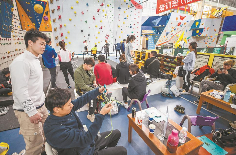 东南网4月3日讯(福建日报记者 林熙 摄)1日,学员在福州等高线攀岩馆参加攀岩职业技能鉴定考核。近日,福建省攀岩运动协会在福州举办了首期攀岩指导员职业技能鉴定培训班,来自全省的32名学员参加了此次培训,包含了绳索应用、攀石保护、技能讲解等。考核合格者将获得国家职业资格攀岩初级社会体育指导员证书。