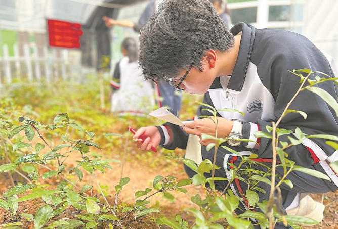 在南平市武夷山第一中学“生物学科教学研究基地”,学生在观察茶树生长情况。 东南网6月4日报道(福建日报记者 储白珊 文/图) 核心提示 今年1月,教育部公布全国首批中小学科学教育实验区和实验校名单,福建有4个区和36所学校入围。 入围学校既有福州第一中学、福建师范大学附属中学、厦门双十中学等知名中学,也有南平市建阳区童游中心小学、明溪县实验小学等地处偏远的小学。它们并非“功成名就”,而是要扛起先行先试的重任,在观念转型、教材编写、课程设置、师资培养等科学教育重点领域和关键环节,积极探索、大胆创新,破解难点堵点问题,形成一批可复制、可推广的典型经验成果。 试点半年来,福建中小学校内科学课是否变得更有“科学味”?课堂内外有了哪些新联动?又遇到了哪些问题?近日,记者深入多个实验校、实验区进行调查。 十几个小脑袋挤挤挨挨,围住一根透明圆柱体,十几双眼睛全神贯注地盯着圆柱体内那条水线。水线似乎听得懂指令——你窃窃私语时,它轻抬轻落、温柔不已;你大声呼喊时,它直冲柱顶、激昂澎湃。 这么听话的“喊泉”,背后是什么科学原理?大家一阵探究,发现泉眼下方安装了一个声控电阻开关,当开关因周围声波而产生振动时,就会启动水泵,让泉水喷发。“太有趣了!晚上我就回家考我爸爸。”一个孩子兴奋地喊道。 追求科学的种子,就在这别有趣味的摸索探究中,种进了孩子们的心田。 科学课上出“科技味”了 “喊泉”建在南平市建阳区童游中心小学新校区的科技馆里,是学生们喜爱的“科技玩具”。 但学生们的“科技玩具”可不只“喊泉”。 5月23日下午4点,在该校科普劳动实践基地观察菜苗生长变化的四年级学生,玩的就是肥力传感器和潮汐循环灌溉系统。 菜苗分别种在基地内的土栽实验区和水培实验区。散落其中的学生们,或认真记录土壤相关数据,或用放大镜观察水培立架上的小菜苗。 “长在水里怎么施肥?”“为什么它们会微黄?”“这片叶子被虫啃光了,它还能再长出来吗?”问题一个接着一个被抛出。两名科学老师跑前跑后,答疑解惑。 “我们以智慧农业切入,尝试破解跨学科学习的实施难点。”副校长、科学教师叶卉介绍说,“在土栽实验区安装温度、肥力等各类传感器,能基于物联网构建大数据服务平台,精准获取卫星遥感气象信息、实景信息等,实现农业基础调查数据的现代化集中统一管理;在水培实验区将灌溉与施肥融为一体,能按作物种类的需肥规律和特点,通过潮汐循环灌溉系统,实现水肥同步管理和高效利用。” 同一时间,63公里外的武夷山第一中学校内一个大棚里,几名学生蹲在一垄茶树前,仔细观察和记录着土壤参数和茶叶样态。 他们是北京师范大学刘恩山教授的“科学小助手”。去年年底,刘恩山在武夷山第一中学设立“生物学科教学研究基地”,带领师生以“改变生活的一片树叶”为主题开展武夷岩茶种植跨学科大单元项目研究,并捐赠小型生态茶叶种植大棚,对武夷岩茶的种植进行光照、温度、水循环灌溉系统、土壤检测、仪器检测、化学试剂使用等项目研究。 “参与刘恩山教授的项目,让学生们进一步告别‘在黑板上做实验,在考卷上写实验’。”武夷山第一中学校长暨洪彪说,“武夷山生物多样性资源优势显著。我们利用地域资源优势开展茶文化科学教育,在校内建成‘岩茶工坊’,开辟茶园作为校内劳动实践基地,引茶工艺进校园,让学生在校内就能参与并体验大红袍制作技艺,培养科学精神。” 校内科学课上出了“科技味”。校外的呢?厦门市海沧区作为首批科学教育实验区,也有其独特的教育实践样态。 5月28日上午9点,厦门市海沧区沧江研学营地里,东孚实验小学六年级的学生们变身为“机械工程师”,开始了为期3日的“冲锋!智造前沿”深度研学。 国内一流的镜片自动化生产车间——艾普光学制造工厂是他们研学的首站。一进入工厂,学生们就被穿梭于各个工作站之间的智能机器人深深吸引——这些机器人拥有敏锐的“双眼”和灵活的“手臂”,它们用传感器迅速捕捉镜片形状、大小、位置等关键信息,为后续的加工提供准确的数据支持;还会根据预设的程序和算法,自动调整工作状态,快速准确地完成镜片的抓取、传送和加工等任务。 “不愧是全自动生产线上的‘明星员工’!”有学生叹道。 在研学期间,学生们白天前往不同企业的创客实验室、厦门市科技馆,近距离感受智能机械臂的运作过程、自主设计并完成3D创意制作及机器人编程,夜晚则在营地或天文馆通过大口径天文望远镜体验观星,探索宇宙奥秘。 像这样3天2夜的科学实践,海沧区各个学校每学年都有。沧江研学营地则是几乎所有学校的首选。“营地创立之初就锚定‘科学+’定位,以‘未来的我们’为主题,将科学教育与职业体验、劳动教育相结合。目前,营地已累计开发55门原创性科学类课程和42条研学线路。”沧江研学营地策划部负责人杜常翔介绍道。 “走出科学课堂去研学,我的视野更加开阔了。我希望未来能成为一名机械工程师,玩转各种智能机器人!”学生杨子毅说。 向社会大课堂借力 让学生像杨子毅这般具有对科学学习的浓厚兴趣和自发力,是福建省小学科学学科带头人林兆星教学生涯中孜孜不倦的追求。 林兆星,福州市麦顶小学校长兼科学教师。“城市小学在人地