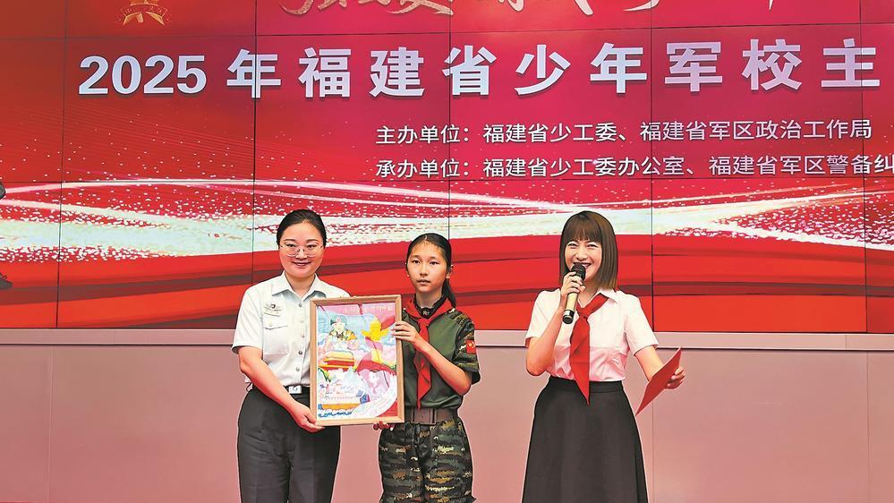 少先队员向卫国戍边英雄一等功臣陈祥榕的姐姐陈巧钗(左一)送上绘画作品。 东南网9月16日报道(福建日报见习记者 余跃 文/图) 向兵哥哥学习“叠豆腐块”、观看势如破竹的刺杀操表演、近距离观察枪械……13日至14日,省内50名少先队员参加了在榕举办的“强国复兴有我 争当新时代好少年”——2025年福建省少年军校主题实践活动。 本次活动持续2天,50名省内少先队员代表观看了九三阅兵视频,参观了福建省革命历史纪念馆“伟大的胜利——福建省纪念中国人民抗日战争暨世界反法西斯战争胜利80周年主题展览”、福州市铜盘中心小学“党建+双拥”展馆,还到省军区参观了军史馆和连队荣誉室。 14日一大早,少先队员们共同观看了升国旗仪式,在鲜红的国旗下更加坚定了“争当新时代好少年”的信念。在省军区,少先队员们共同观摩体验连队内务整理、枪械分解、军体拳等军事项目。 通过沉浸式国防教育实践、近距离领略军人风采,队员们深入了解了福建作为东南抗战前沿、闽台抗战枢纽和华侨支援通道的重要地位和光辉历程,学习了国防军事知识,感受了浓厚的学军爱军崇军氛围。 在主题分享会上,全国最美志愿者、九三阅兵现场观礼代表、福州市退役军人关爱协会戎耀宣讲团团长钱宏伟,省军区政治工作局干事、卫国戍边英雄一等功臣陈祥榕的姐姐陈巧钗,以及来自省军区福州第一干休所的红色宣讲员崔鲁逢、柳思羽分别作《亲历阅兵仪式的难忘感受》《少年陈祥榕》《解放福建的共和国将军——朱绍清》《上甘岭——永不磨灭的精神高地》主题宣讲,并与少先队员面对面互动交流。 厦门何厝小学是中国少年先锋队队歌诞生地,这次活动让何厝小学的少先队员陈婧妤对队歌内涵有了更深刻的感悟。“先辈们的故事让我更加理解队歌里不怕困难、不怕敌人的那份勇气。他们都有坚定的信念,为国而战。队歌里唱到‘继承革命先辈的光荣传统’,这不只是一句口号,更是一份责任。”陈婧妤说。 在省军区参观时,看着整齐的床铺、棱角分明的被子,感受到军营一丝不苟的作风,龙岩市武平县刘亚楼红军小学的少先队员刘语萱深受震撼。“我懂得了军人的严谨作风与铁的纪律。战士们虎虎生风的刺杀操表演,尽显勇往直前的气魄。在观摩枪械分解时,我更是感受到了军事科技的魅力。”刘语萱说,“我要以刘亚楼将军忠诚坚定、英勇果敢、创新进取、无私奉献的精神为引领,做一个有爱国情怀、责任担当、吃苦精神、创新能力的新时代好少年。” “此次少年军校活动意义不凡。”宁德市蕉城区实验小学少先队执行大队辅导员林颖表示,少先队员在红色教育与国防体验中厚植爱国情,砥砺强国志,正是对这些精神的传承与践行。“今后,我将继续带领他们在少先队实践活动中传承红色基因,锤炼意志品格,助力他们成长,成为能够担当民族复兴大任的时代新人。”林颖说。 活动由省少工委、省军区政治工作局共同主办,省军区、省少工委、团省委、省教育厅等相关负责同志以及少先队员、少先队辅导员代表共80余人参加。 |