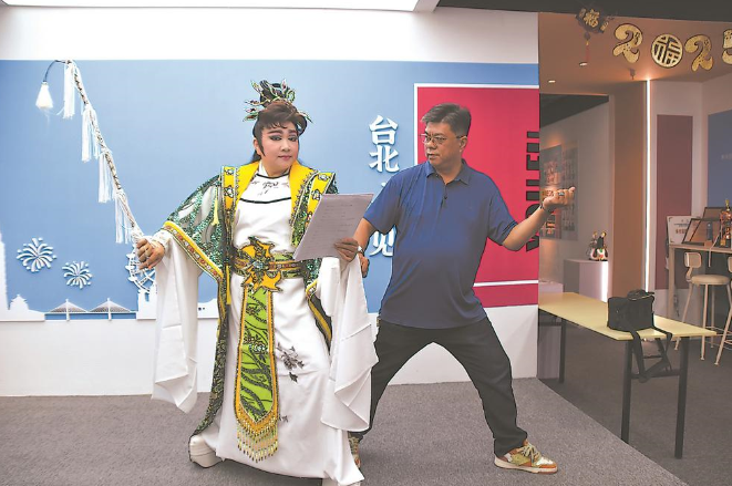 朱晁升(右)在指导歌仔戏小生王贵芬排练。 东南网10月2日讯(记者 吴洪 文/图)台上一分钟,台下十年功。 “一朝天子一朝臣,万里江山万里民,文官提笔安天下,武将提刀保国家……”10月1日,在位于福州“闽江之心”的闽台家园台湾青年创新创业基地(以下简称“闽台家园”),台湾泰朋戏剧团歌仔戏小生王贵芬身穿华丽的歌仔戏服,一边摇曳着身姿,一边清唱着歌仔戏经典曲目《杨宗保巡营》,团长朱晁升则在一旁悉心指导,只为在“十一”长假期间向福州市民献上一出精彩的歌仔戏。 歌仔戏是两岸艺术家共同创作的结晶。它的前身叫锦歌,是流传于漳州及周边地区的民间艺术。300多年前,锦歌随着闽南移民传入台湾,在清末民初时结合梨园戏、北管戏、高甲戏等戏曲演变为台湾歌仔戏。20世纪20年代,台湾歌仔戏班渡海回闽,又将歌仔戏回传至闽南地区,经过改良变为芗剧。因此,歌仔戏是大陆地方戏曲中唯一跨海而生、花开两岸的剧种。 去年以来,从业44年的朱晁升带着团队成员,怀揣着传承与创新歌仔戏的梦想,在八闽大地开启了一场文化寻根之旅。 “台湾传统剧种的根在大陆” 朱晁升第一次接触歌仔戏是6岁的时候,到父亲创办的台湾泰朋戏剧团学习打鼓。从此,他在家庭戏曲氛围的熏陶下,走上了传统戏剧的演艺之路。 时间回到20世纪70年代,那时台湾岛内戏迷众多,京剧、豫剧、越剧、歌仔戏等传统戏曲百花齐放。 宜兰是台湾歌仔戏诞生地。朱晁升的父亲朱盛芳是客家人,1973年他以京剧起家,在宜兰县罗东镇创立了台湾泰朋戏剧团,常常一年演出上百场。 1976年,朱晁升在宜兰出生,幼时起便在老艺人的指导下,系统学习了歌仔戏、北管戏、客家戏等传统剧种。 众多戏曲中,以锦歌为基础、在台湾土生土长的歌仔戏备受民众喜爱,甚至一度从舞台走向了电视,走进了千家万户。 1987年,两岸开启民间交流往来,闽台歌仔戏的互动也逐渐频繁。 “1995年,漳州市芗剧团到宜兰演出交流时,我发现漳州芗剧与台湾歌仔戏竟然用一样的唱腔、一样的语言。于是,我疑惑地问父亲,为什么漳州人也会唱歌仔戏?”朱晁升回忆道。父亲的回答,让朱晁升终生难忘:“台湾传统剧种的根在大陆,而歌仔戏的根就在福建,有机会你一定要回去寻根。”从此,“寻根”二字便深埋在他心里。 2010年,朱晁升子承父业,成为台湾泰朋戏剧团的新任团长。然而,传统戏曲在岛内的形势却发生了变化。由于时代的变迁,歌仔戏等传统戏曲在岛内日渐式微,各种演出邀约逐渐减少。尤其是2016年民进党上台后,在各行各业推行“去中国化”,让台湾泰朋戏剧团的生存举步维艰。 “走,一起回福建寻根去!”2024年初,朱晁升作了一个大胆的决定:带着剧团里的艺人,跨海到福建发展。 说干就干。一年多来,朱晁升带着团队成员走访了厦门、泉州、漳州、福州等地,四处探访福建民间剧团。在完成父亲寻根遗愿的同时,也集合闽台业界的力量,共同为这横跨两岸的剧种寻找一条可持续的传承与发展之路。 “让歌仔戏回归生活” 随着城市化进程的加快,传统戏曲原有的群众基础松动甚至消失。“怎样既保留传统精华,又融入现代元素,吸引年轻观众,是两岸戏曲界面临的共同难题。”用双脚丈量福建土地的同时,朱晁升一直在思考歌仔戏的出路。 “走出去”,融合更多现代和地方元素才能“老树发新枝”。可是,该如何“走出去”?正在踌躇之际,朱晁升结识了闽台家园的执行长李宛芯。同样跨海而来,深耕福建七八年的李宛芯深知孵化平台对台胞台企的重要性。 “对他们来说,最需要的是一位引路人,用他们熟悉的话语与思考方式,介绍福建的好政策,协助对接市场。”李宛芯说,福建有不少创业基地、众创空间,而闽台家园设立的初衷是“以台助台”,通过对接戏曲艺术、创意教育等两岸文化产业,助力两岸文化交流。 在李宛芯的牵线搭桥下,今年4月台湾泰朋戏剧团入驻位于福州“闽江之心”的闽台家园,并开始参与到两岸文化交流活动中。 “欢喜来到这所在,武夷山风景也不歹,心情开朗笑嗨嗨。”在武夷山茶园文化季暨两山青年嘉年华活动中,他们漫步青山茶垄、丹霞碧水间,听着武夷山、阿里山交流20年的故事,写下了歌仔戏《戏说武夷》,用歌仔戏的曲调介绍武夷山的美景、美食和好茶。 “山歌千年茶当酒,故乡就在土楼里。南靖,冲壶茶,听段千年香!”在南靖举办的两岸文旅微视频创作研习营活动中,他们走进南靖土楼、云水谣古镇,探访了歌仔戏重要曲调都马调的源头,见证了两岸学子从素未谋面到相知相识,写下歌仔戏《土味话楼》,寻根客家文化。 “来到泉州好所在,闽南古迹真的赞,唱出歌仔戏给大家听。”在泉州文兴宫的庙会活动中,领略古城半城烟火半城仙的繁华,感受与台湾一样的红砖古厝、闽南美食、亲切乡音,写下歌仔戏《台湾歌仔游泉州》,细数闽台的同根同源。 …… 为了更接地气,朱晁升与团队成员还尝试着将闽南语、普通话、客家话等“混搭”来演绎新创作的歌仔戏,获得了不错的反响和热情的邀约。“事实证明,通过不断创新,歌仔戏可以突破地域限制,从小众群体走向更大的舞台。”朱晁升说。 “不能让子孙后代忘记乡音” 生命不息,创新不止。为了让更多人尤其是年轻一代了解和接纳歌仔戏,台湾泰朋戏剧团正积极尝试更多的跨界合作。 受福建京剧院邀请,“十一”长假期