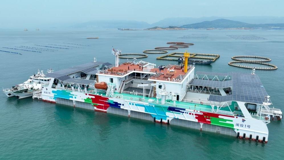 “闽投1号”新华社记者 姜克红 摄 “闽投1号”长92米、宽36米,采用海工平台半潜式结构设计,养殖深度可达25米,为大黄鱼打造了名副其实的“深海豪宅”。与传统网箱7米至8米的养殖深度相比,大黄鱼“住宅”更宽敞,呼吸更自由,生活品质直接“next level”! 在不远处的海域,“定海湾1号”和“定海湾2号”两座智能化深远海养殖平台也迎来丰收。这里养殖的大黄鱼约30万条,平均每条鱼重1~1.5公斤,每公斤价格近300元。 2024年,福州在全省率先提出“百台万吨”深远海养殖工程建设规划,计划投放100台深远海养殖平台,实现万吨大黄鱼产量目标。截至目前,福州市累计投放“闽投”“定海湾”“乾动”等深远海装备养殖平台12套,投放数、投产数位居全国第一。从木头渔排到塑胶渔排,再到如今的深远海养殖平台,福州海洋养殖业正经历从近海到远海、从粗放到精细的深刻变革。 福州市连江县定海湾海域的海洋牧场,养殖工人驾驶养殖船来往穿梭,一派繁忙景象。王旺旺 摄 向海而兴 从连江造船基地的 全球首艘4.5万吨级海洋工程船 到福清三峡产业园的 26兆瓦海上风电机组 再到定海湾的智能养殖平台 福州海工装备产业 正以传承自历史的创新为舵 以与时俱进的制造为帆 在蔚蓝大海中破浪前行 续写着从“福船” 到海洋重器的蓝色传奇 "闽人智慧"编辑部、福建日报社全媒体传播中心、福州日报社出品 资料来源:新华社、央视新闻客户端 作者:江海 |