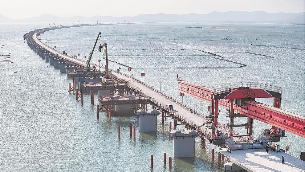 12月24日,东山县诏安湾海域,随着架梁机将一榀数百吨的箱梁平稳、精准架设到东山跨海特大桥桥墩上,漳汕高铁正式进入海上架梁施工阶段。东山跨海特大桥全长20.262公里,是漳汕高铁重点控制性工程之一。郝春娥 摄 东南网12月25日报道 (福建日报记者 方金春 张辉 林霞) 隆冬时节,八闽处处活力澎湃、万象开新。 《福建省县域重点产业链发展白皮书(2025)》发布,“全省县域GDP年均复合增长率5.6%”“千亿县从14个增长至18个”,一个个数据传递经济发展信心;举办“炫彩中国·清新福建”全球推介会、启动“购在中国 全闽乐购”消费季,一场场活动激发消费热情…… 在“十四五”规划收官之年,全省紧扣“奋勇争先、再上台阶”年度主题,扎实做好经济社会发展各项工作,确保收好官交好卷。 拼在当下,谋在长远。全省各地各部门因地制宜、科学谋划,切实迈好“十五五”发展的第一步,奋力谱写新征程新福建建设新篇章。 冲锋冲刺 以决战决胜之姿打好收官战 10月11日,装载首炉核燃料;11月3日,反应堆首次临界;11月22日,首次并网成功,向电网输出第一度电……进入四季度以来,漳州核电2号机组建设吹响冲锋号,加速全面商运步伐。 作为全球最大的“华龙一号”核电基地,漳州核电规划建设6台机组。目前,一期工程两台机组均已并网发电。基地全面投产后,每年可提供超600亿千瓦时清洁电能,是厦门市、漳州市用电总和的75%。 棋到收官、赛近终点,时间的进度条一点点逼近年终岁尾;登顶时刻、冲刺关头,拼搏的身影跃动在福建山海城乡之间。 拼的是实绩实效,在善作善成中积蓄发展势能—— 11月28日,福州长乐国际机场二期扩建工程新建主跑道正式亮灯,标志着工程进入收尾阶段,朝着2026年投用目标全力冲刺。这是打造全省首个“零换乘”立体枢纽、真正实现“高铁进机场”的项目,建成后将推动机场迈入“双跑道、双航站楼”时代。 拼的是责任担当,在攻坚克难中触摸民生温度—— 12月1日,宁德上白石水利枢纽工程正式立项。作为全省首个获国家审批立项引入民营资本的“两重”水利项目,该工程建成后可使福安城区防洪标准由20年一遇提高到50年一遇,解决闽东60多万群众的洪涝之患,并为福建电网提供优质电能。 拼的是能力作风,在锐意进取中彰显创新实力—— 12月20日,厦金大桥(厦门段)项目完成全桥首榀海上装配式大节段钢箱梁架设。项目通过“搭积木”式的工厂化、装配化工艺,结合钢梁大节段整体吊装技术,不仅将海上作业效率提升约4倍,还显著降低对湾区水动力的影响,实现对中华白海豚栖息地“零干扰”。 冲锋冲刺!满弓紧弦推进的背后,是福建敏锐把握时与势,深刻洞察危与机,跳起摸高挑大梁,俯身躬耕扛重担。 2024年10月,习近平总书记再次踏上福建的土地,从美丽海岛到经济特区,看百舸争流、千帆竞发。对福建的下一步工作,他指出要在推动科技创新和产业创新深度融合上闯出新路,在全面深化改革、扩大高水平开放上奋勇争先,在推动区域协调发展和城乡融合发展上作出示范,在提升文化影响力、展示福建新形象上久久为功。 思想如炬,照亮前路;初心如磐,接续奋斗! 省委书记周祖翼在全省领导干部大会上强调,以实际行动回报习近平总书记的关心厚爱,为以中国式现代化全面推进强国建设、民族复兴伟业作出福建新的更大贡献。 明确任务书、时间表、路线图。 带着感情干、责任拼、使命闯。 一年来,全省党员干部牢记嘱托再出发,持续深化拓展“三争”行动,牢牢把握高质量发展这个首要任务,深入落实一揽子增量政策和存量政策,不断提振干事创业精气神,持续巩固经济回升向好态势。 走读福建,山海城乡,工地厂房,实验基地,在一张张收官答卷中纵览气象万千,在一条条昂扬曲线中感受活力奔涌。 全球最大26兆瓦级海上风电机组历时6年成功下线、全球首个兼备1000公里续航以及4C超充特性的磷酸铁锂电池历时8个月发布……随着高能级科技创新平台加速培育,“实验室”到“生产线”距离不断缩短,越来越多的科技成果高效转化,科技创新与产业创新深度融合。 中国(福建)自由贸易试验区迎来挂牌十周年,累计推出647项创新举措,其中全国首创289项,在全国复制推广35项;出台大陆首部促进两岸标准共通的地方性法规,鼓励两岸同胞携手,开展两岸标准化合作……发扬敢为人先、爱拼会赢的开拓创新精神,统筹推进深层次改革和高水平开放,福建高质量发展道路越走越宽广。 6个重点“产业飞地”“科创飞地”建设渐入佳境;龙岩、三明人均地区生产总值领跑全国20个革命老区重点城市;新增2个优势特色产业集群、1个现代农业产业园和7个农业产业强镇……新时代山海协作按下“升级键”,老区苏区振兴发展跑出“加速度”,乡村全面振兴激活“新引擎”。 《福建省民营经济促进条例》将于明年1月1日起施行;2025年中国民营企业500强榜单中福建企业入围数比上年增加6家;全省1.5万多家高新技术企业中民营企业占比95%以上……民营经济这片“森林”更加郁郁葱葱,民营企业和民营企业家发展信心更强、发展定力更稳、发展动力更足。 保持定力、持续用力、全面加力,全省上下正竞相发力、汇聚成势,全力以赴抢时间、谋项目、抓发展,以冲刺决胜之势努力完成全年目标任务。 向新向优 奋力把新福建蓝图变为美好现实 扭住目标不放松,一张