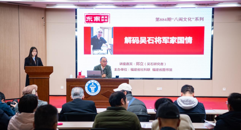 东南网1月12日讯(本网记者 郑琦/文)1月10日上午,由福建省社科联、福建省图书馆共同主办的第884期东南周末讲坛在省图书馆一楼多功能厅精彩开讲。活动现场座无虚席,150余名听众齐聚一堂,共同聆听吴石研究者郑立带来的专题讲座“解码吴石将军家国情”,透过这位隐蔽战线英雄的诗作、家书以及相关史料,一同走近这位兼具军事才能与文人情怀的传奇人物,感悟他的家国心与桑梓情。