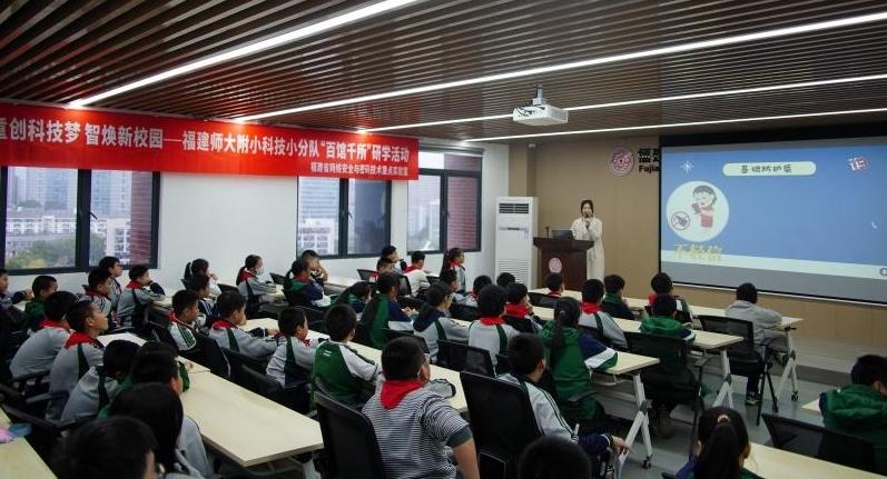 学校组织同学们开展研学 项目启动之初,由老师们精心制作的校史微课如一部时光纪录片,讲述了学校百年的故事与传统;校园导览微课像一次深度探索,带大家重新审视教学楼、图书馆、操场、东篱园的每个角落;智能设备微课则是一份使用说明书,清晰展示了学校现有科技设施的基础与潜能。为使项目探究更加深入,学校精心策划了系列专题讲座与研学活动,为孩子们的奇思妙想提供专业引领,带领学生走进福建师范大学网络安全与密码技术重点实验室,让他们真实地感知科技的力量。这些多元的学习体验,不仅构建了坚实的知识框架,更极大地激发了学生们的创新热情。 从创意萌发到作品成型,孩子们经历了一次完整的问题解决之旅:实地考察测量、团队头脑风暴、绘制设计草图、动手制作模型、不断测试改进……学校搭建了跨学科学习的支持平台,科学、信息、语文、数学、美术等多学科教师联手提供专业辅导,助力学生进行自主学习探究。 最终,172个优秀方案获得表彰,这些充满童真与智慧的作品,共同描绘出孩子们心中未来校园的蓝图。三场年级成果发布会上,同学们带着自己的作品,自信地站上展示台。六年级的项目体现系统规划,如“智慧校园安全管理系统”;五年级的方案聚焦实际问题,如“‘智慧识红’红领巾提醒系统”;四年级的创意充满童趣巧思,如“墙角防撞报警系统”、“AI智能扫地机”等26组作品,十分吸睛。 “通过学习,我们才知道原来学校已经有了这么多智能设备,也更清楚了可以从哪些地方让校园变得更好。我们小组正是基于对教室光环境的重新认识,设计了‘静境光小精灵’”四年级的张嘉宸同学分享道。 “红领巾是少先队员的光荣标识,佩戴好它是我们的责任与荣誉!我们亲手教AI认识了红领巾,像魔法师一样赋予了机器‘智慧’。当我们不断优化编程模块,看到系统精准地进行识别时,科技不再是书本上的概念,而是我们手中改变校园的力量。”这是五年级2班一个项目小组的感言。