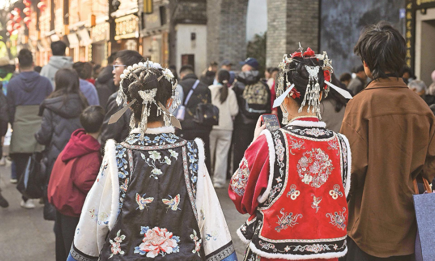 福州三坊七巷炮仗花盛开之处成为热门打卡点。福建日报记者 施辰静 摄 1月中旬福州鼓楼区启动的“寻福中轴 悦享鼓楼”2026年度文旅商乐享消费季,也为冯燊此次福州之行带来了收获。活动依托鼓楼区“一轴两翼八景多点”布局,发布多项促消费举措:品质榜单餐厅赏味地图提供资质查询、菜品推荐、一键导航等一站式服务;福州首家市内免税店落地恒力城,东百中心、大洋晶典等商圈同步推出新春促消费活动;熊猫巴士、爱心树文创、佛跳墙主题潮玩接连亮相…… 这些丰富多彩的文旅消费体验,正是福州近年来深耕中轴线、推动文旅融合发展的生动注脚。近年来,福州以城市中轴线为主干,系统推进历史文化名城保护与活化利用,打造“文化中轴”“诗画闽江”“魅力海滨”三条轴线,不断丰富消费场景、激活文旅动能;先后出台多项保护条例,设立文化遗产保护巡回法庭,完成中轴线1375条文旅资源普查,推动单体文保向成片活化升级,三坊七巷更荣获联合国教科文组织文化遗产保护奖。 保护是为了更好地发展。荧屏上,吴越国的历史跌宕起伏;中轴线上,消费活力奔涌。目前,这条见证闽都文化的城市脊梁上,已有200多处文保单位和历史建筑重获新生。福州中轴线以“一线游全城”的格局,将历史寻访、文化体验、休闲消费、美食打卡紧密连接。游客既可触摸千年文脉,也能沉浸于鲜活的市井消费场景,让文化可感、可游、可消费。 古老的中轴线焕新出彩,激活文旅消费“一池春水”。2025年国庆中秋期间,三坊七巷推出“福满坊巷·巳禧临门”系列文旅活动,累计接待游客126.48万人次,同比增长11.28%;上下杭历史文化街区推出“龙光焕发上下杭”系列文旅活动,接待游客达67.55万人次,同比增长28.32%;烟台山围绕“摩登新地标”“艺文生态圈”“生活新天地”“社交会客厅”四大主题打造特色空间,累计接待游客达92.2万人次,同比增长48%,日均客流量超10万人次。 华侨大学旅游学院创院院长、二级教授、博导郑向敏认为:“历史文化名城的中轴线是一个城市旅游经济核心资源。中轴线上既有空间的历史沉淀,又有时间的文化沉淀,是一个城市内核的时代再现。在当下文化旅游融合发展趋势下,中轴线就显得尤为重要,它作为城市文化消费场景的载体,对线上的各个空间进行保护创造,能够使当代旅游者更清晰地了解城市的发展,感受城市的烟火气和脉搏。”