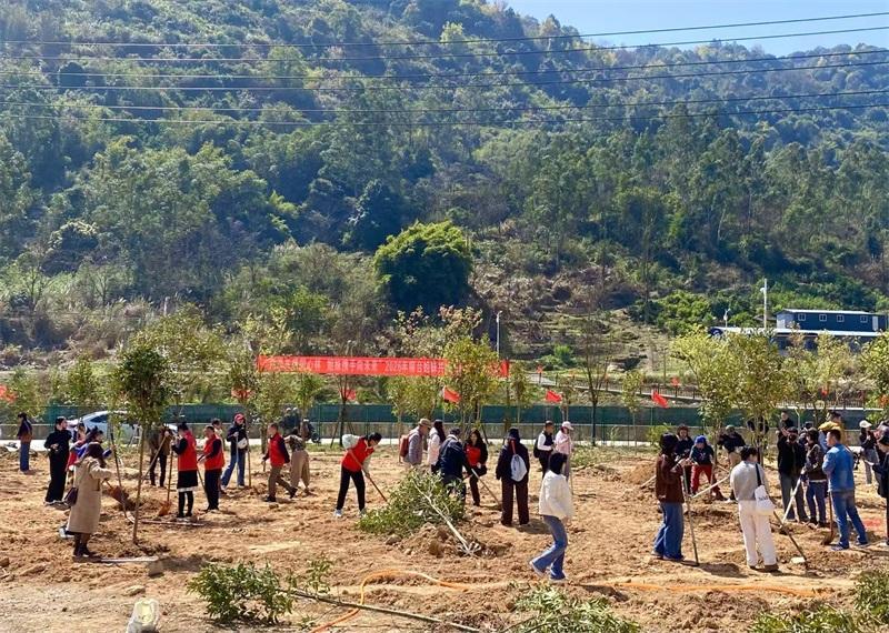 两岸姐妹共植树。 作为深耕闽台交流与乡村振兴领域的实践者,龚钰婷曾担任仓山区浦江社区台湾社区营造师,积累了丰富的乡创经验。去年,她考入福建农林大学乡村振兴学院农村发展专业攻读硕士,希望将大陆的专业理论与自身实践深度融合,在乡建乡创领域实现新突破。谈及重返校园的初衷,她坦言:“过去在台湾接受教育,来福建发展后,想在新时代文明实践站建设、乡建乡创等专业领域重新扎根,实现个人与行业的共同提升。” 同样满怀热忱的,还有台胞王淑娟。她在现场忙前忙后,一口气种下了多棵新苗。“种树不仅能锻炼身体,等树苗长高了再回来看看,心里满是成就感。”王淑娟直言,此次活动意义非凡,“以植绿为媒,让两岸友谊的种子随树苗一同生根发芽。”