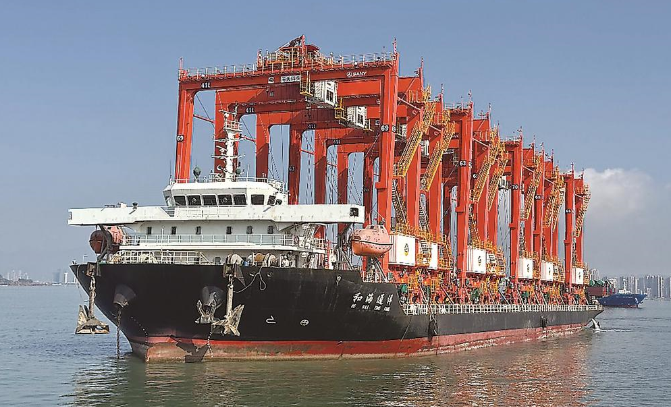 厦门海天码头新一代远控龙门吊正式启动卸船上岸作业