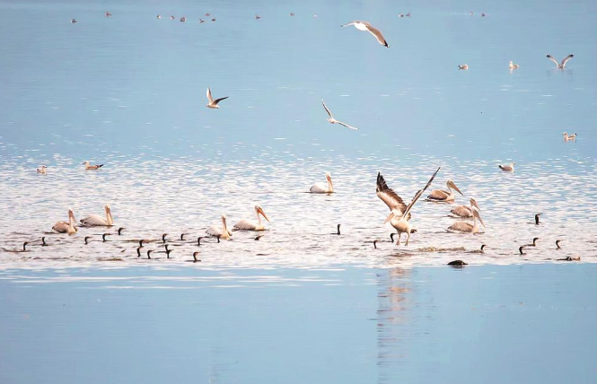 国家一级重点保护野生动物来了!卷羽鹈鹕成群飞临罗源湾